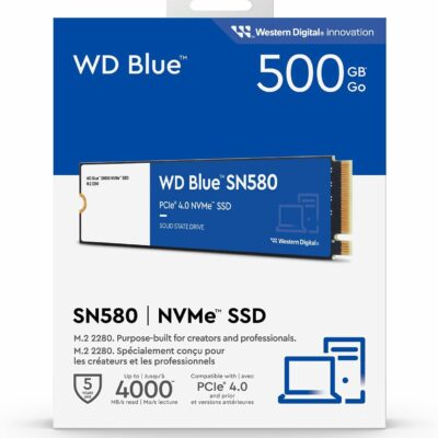 Que vous cherchiez un SSD NVMe 500Go pas cher pour améliorer votre PC ou un meilleur SSD NVMe pour PC portable, le Western Digital Blue excelle par son rapport qualité-prix imbattable.
